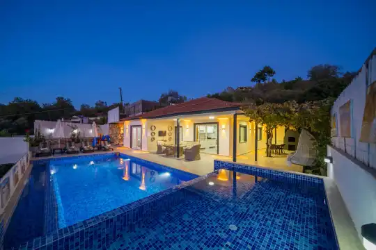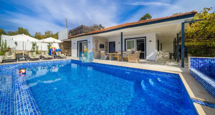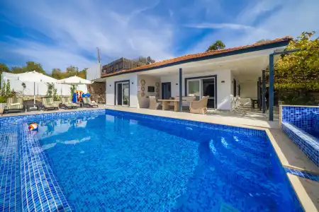 Kaş Sarıbelende Konumlu 4 Kişilik, Havuzu Korunaklı, Jakuzili Tatil Villası