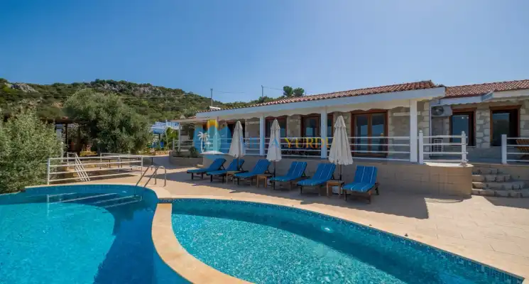 Kaş Üzümlüde Konumlu, 6 Kişilik, Çocuk Havuzlu ve Havuzu Korunaklı Tatil Villası