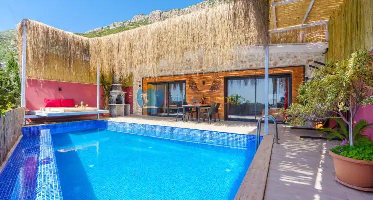 Kalkan Kördere'de Konumlu 2 Kişilik, Doğa Manzaralı Lüks Tatil Villası